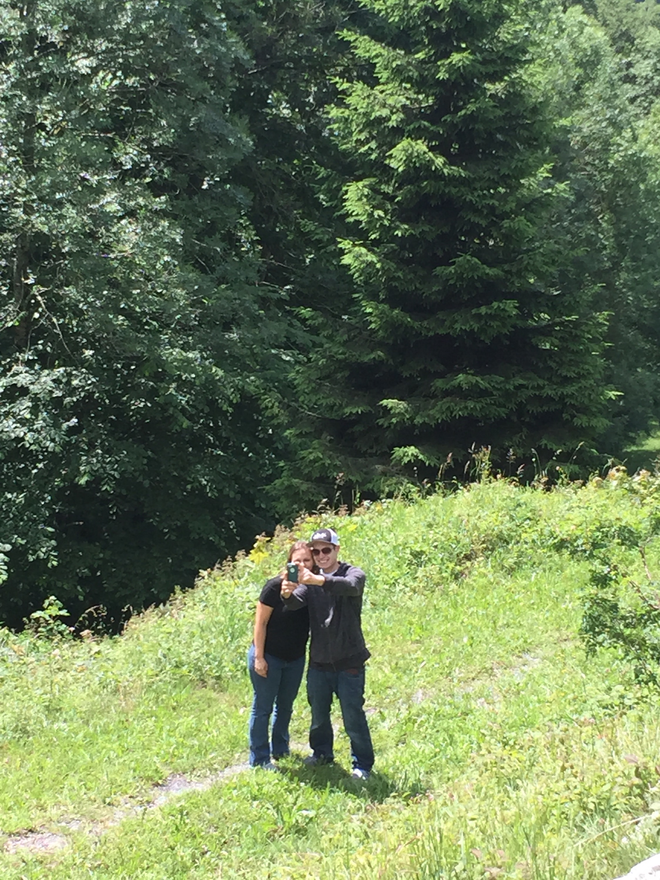 On the way down the mountains, we stopped at some pull offs for photo ops – then on we went! Through mountains, tunnels, hills, valleys, turns, twists, three countries, and finally, the tiny town of Fussen. We caught up with the tourist parade, though even now, with a window that overlooks a bunch of restaurants, it’s very quiet in the town. Interesting.