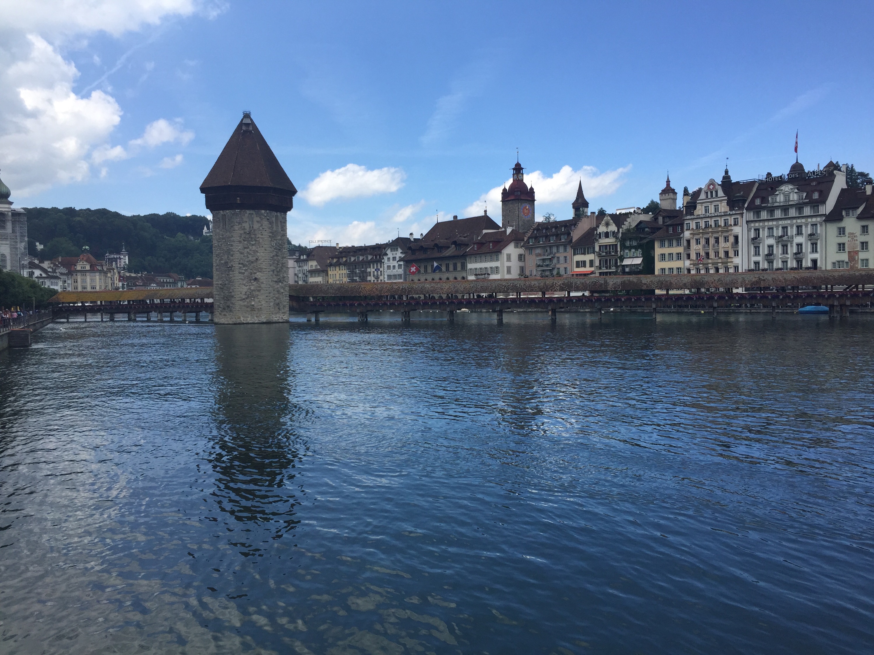 After one last gondola cruise (the steepest and, for me anyway, scariest!), we set off for Lucerne, our first pit stop of the day. I was there twelve years ago but didn’t spent much time so my memories aren’t super clear but I remembered the old bridge and lots of shops – and we explored both! It’s really a beautiful town – very grand in places – and we enjoyed checking it out! (Em and I also found the nicest bathroom in the basement of the Best Western – thanks for the free wee!)