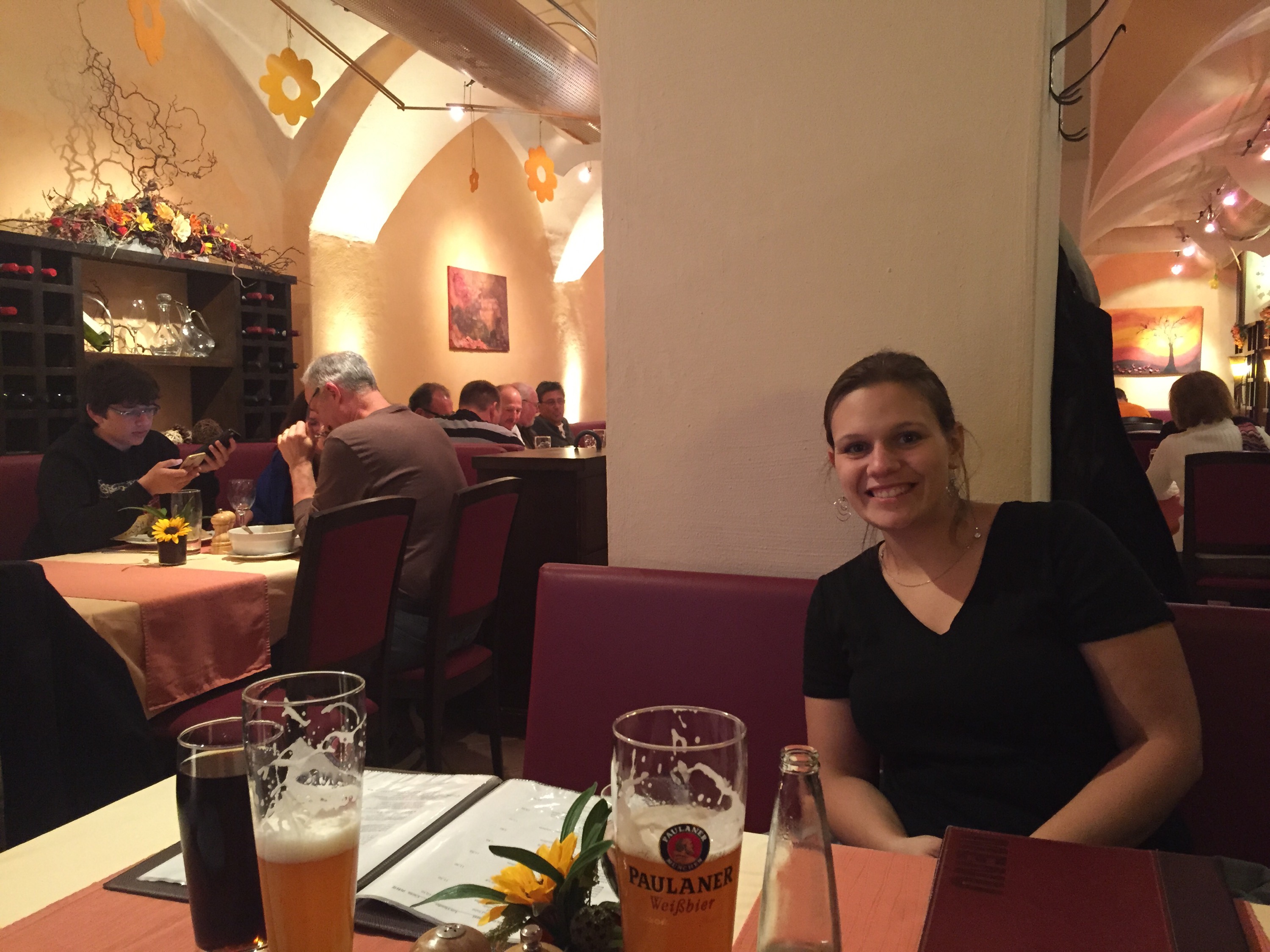 After we settled in, we set out to find dinner – and landed at a Rick Steves recommended place, Restaurant Ritterstub’n. First, buh bye Switzerland, you are TOO EXPENSIVE. Next, wow awesome dinner! We all had some kind of German yumminess, from schnitzel to sausage – even a sausage/Bologna salad!