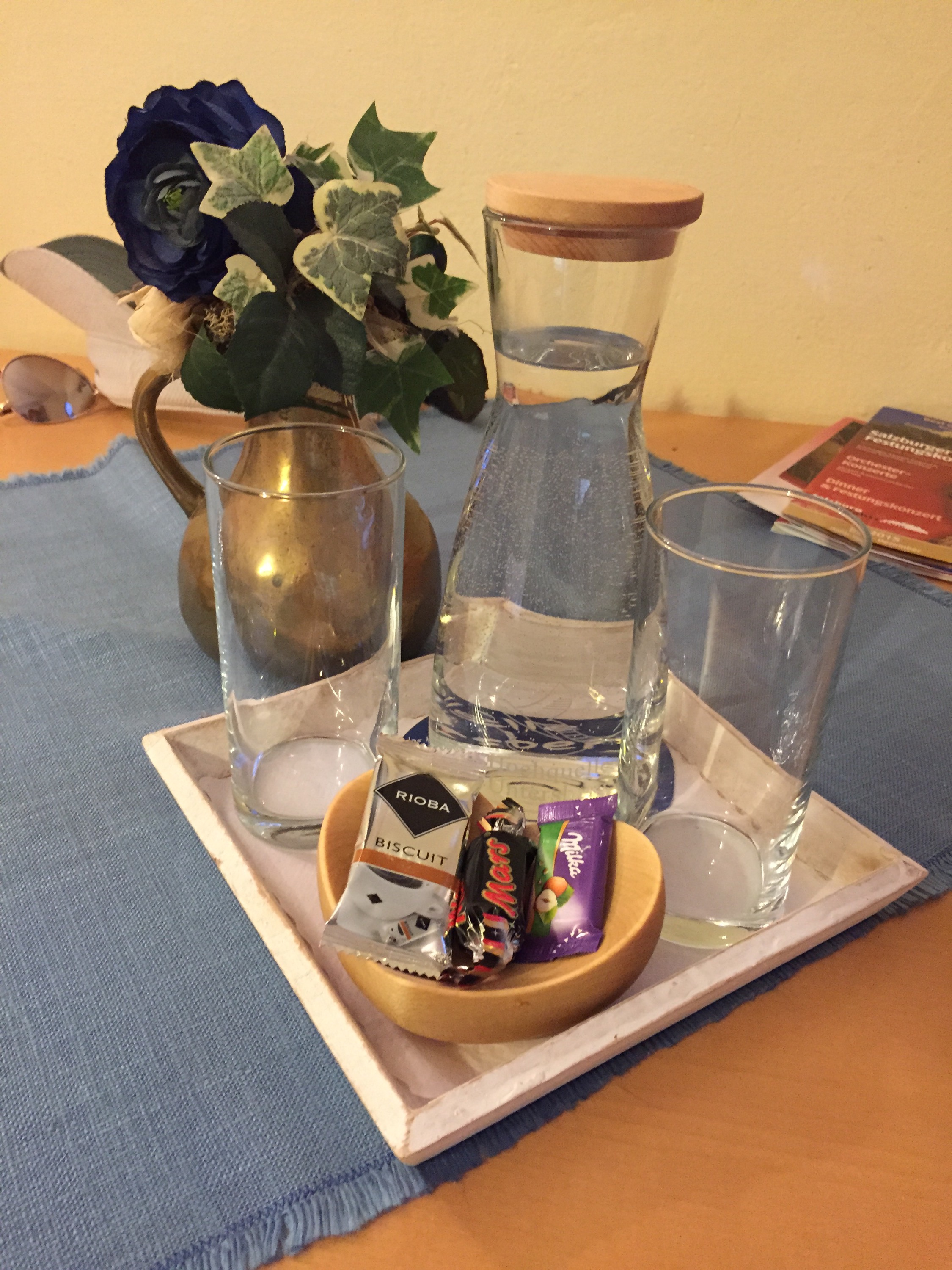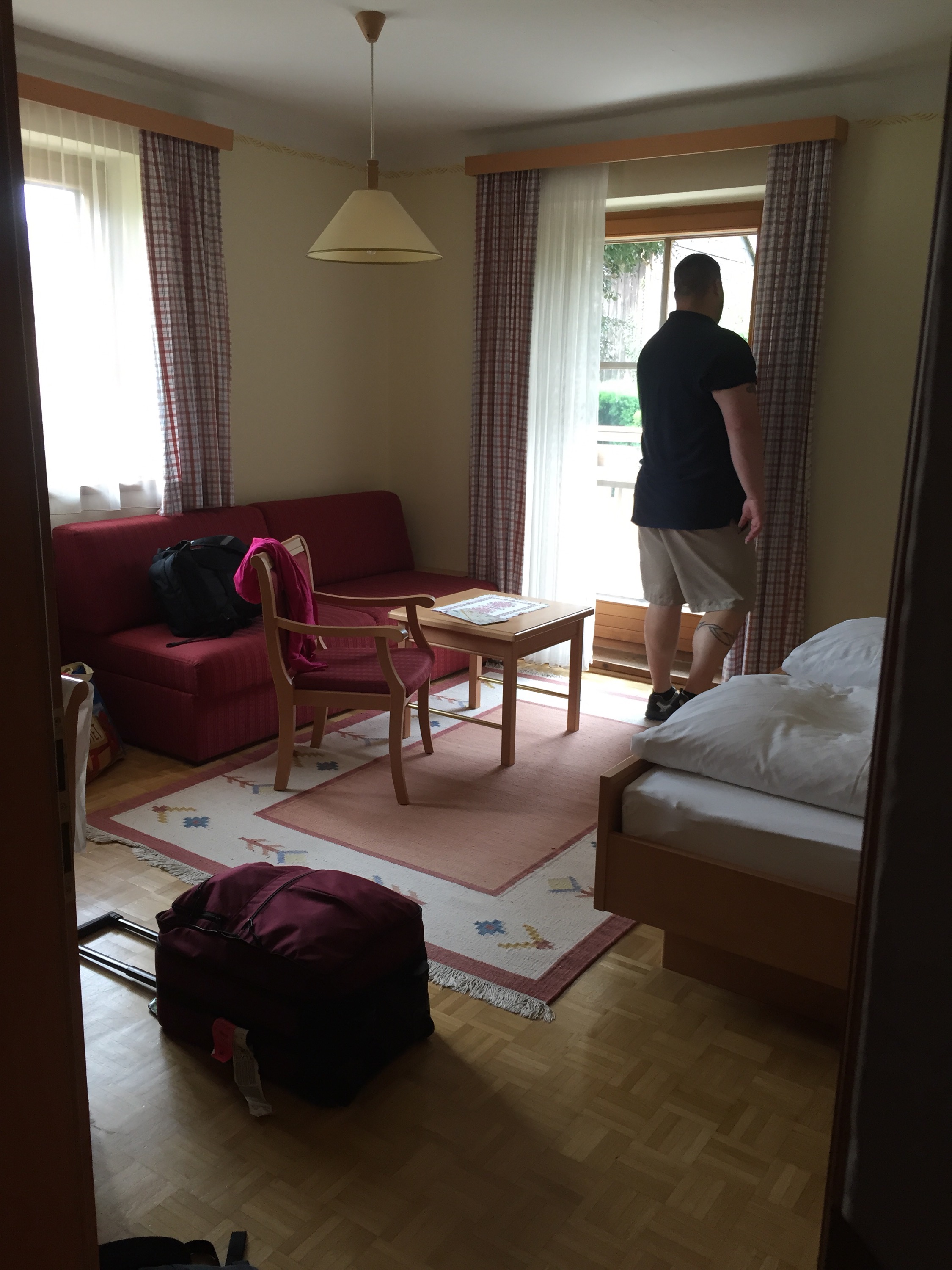 I crack myself up. Anyway! We rolled into Salzburg after a failed toboggan attempt near Neuschwanstein (apparently they don’t run in the rain!) and a pretty easy drive. Our hotel is Hotel Sallerhof right outside of the city in a suburb called Grödig. It’s a fabulous hotel – Em and I stayed here nine years ago – with fabulous prices! Four stars to be exact! We love it here!