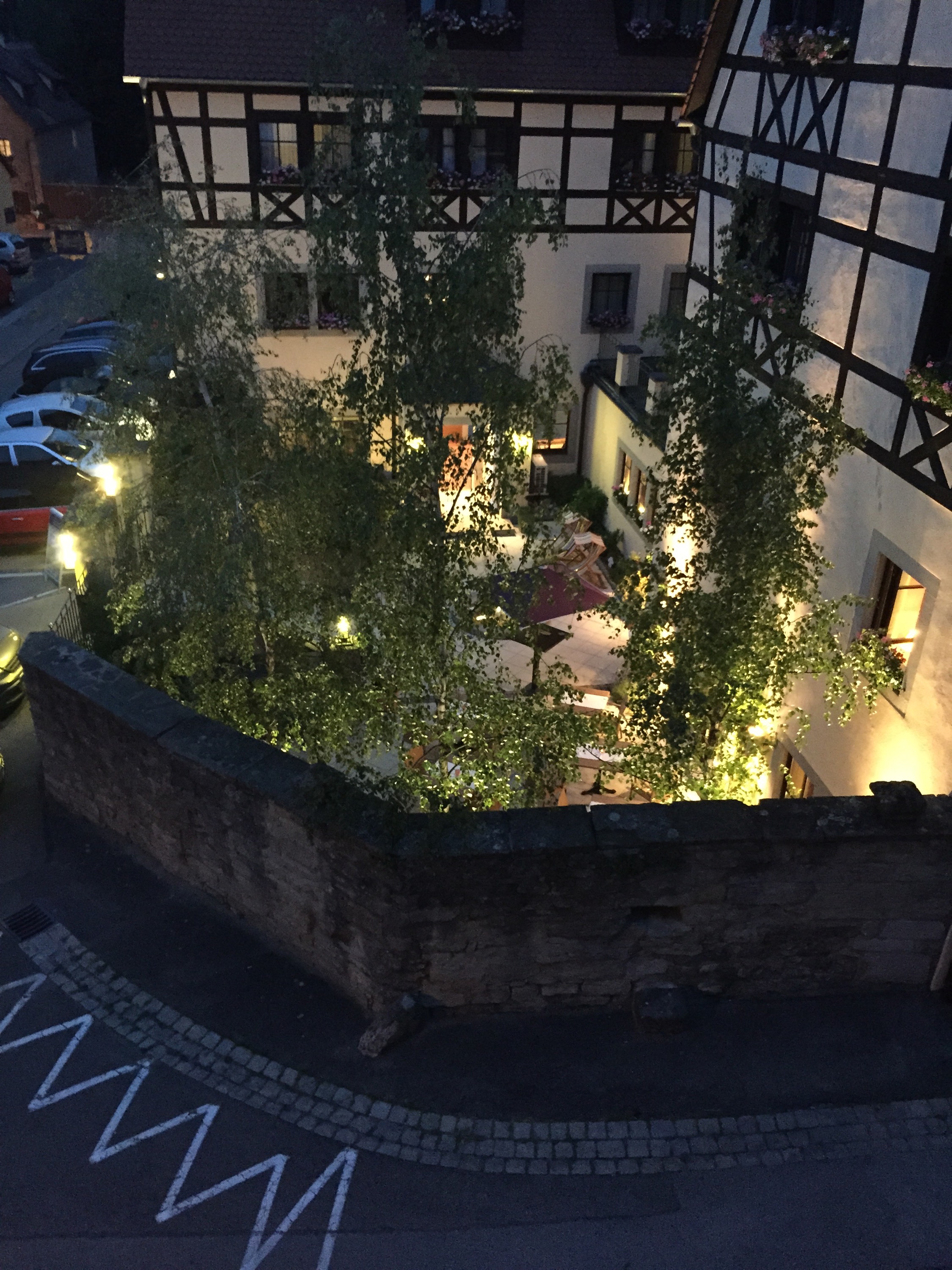 We got on the road north at that point and found the traffic – boo. As a result, by the time we rolled into Rothenburg we had just enough time to check in and freshen up before we had to head out for dinner and our evening activities.