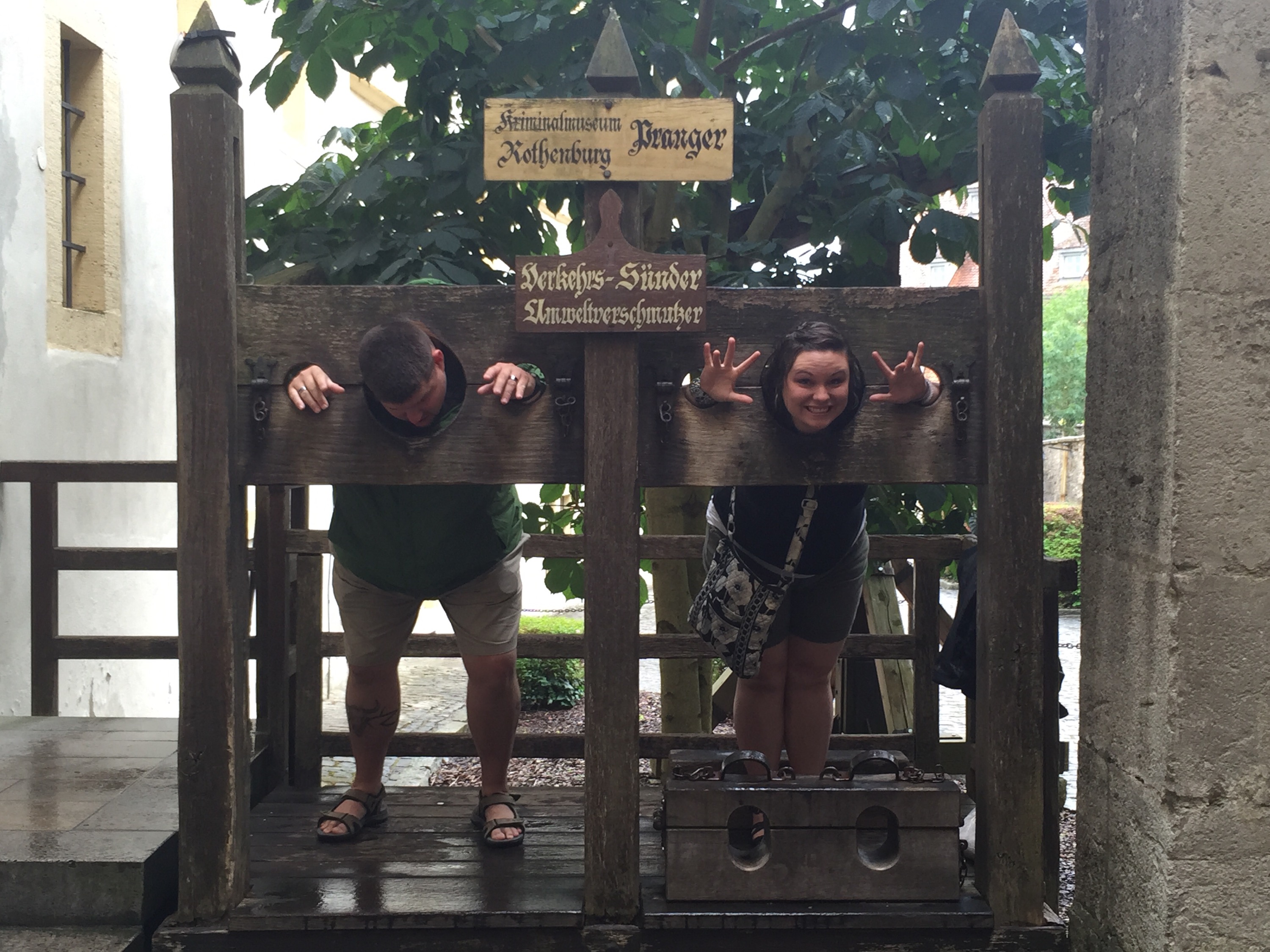 This morning we had one stop to make on our way out of Rothenburg – the Crime and Punishment Museum. Ricky (Steves of course!) gave it two triangles (of three) so we knew it was worth the time. After a lovely breakfast at Gastehaus Rothenburg, we moved the car (yep, parking bans are here too!) and made our way back to the center of town. We did a little shopping as we waited for the museum to open, then descended on medieval justice.