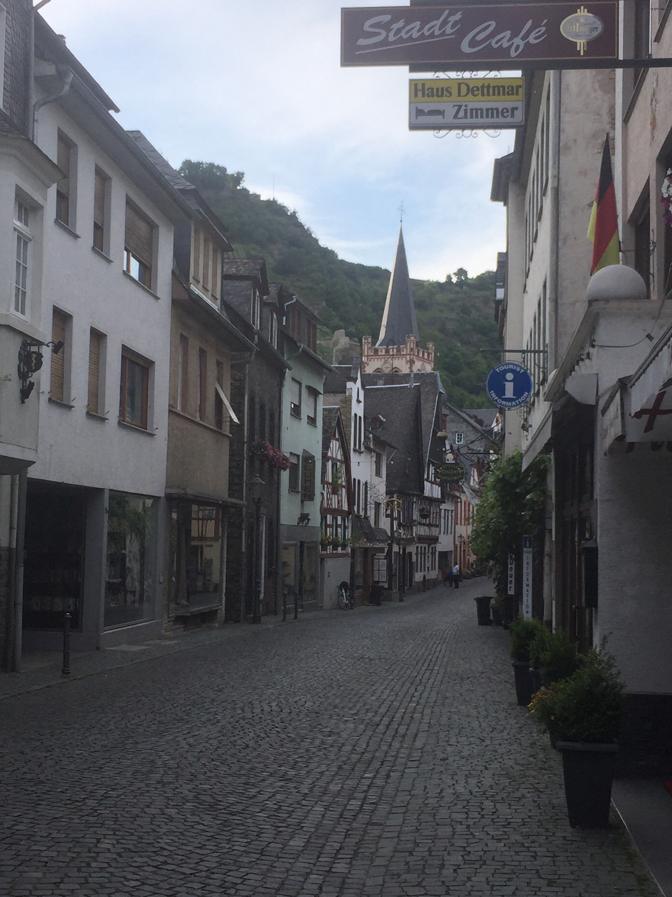 This morning we got up intending to sail the Rhine downstream to St. Goar, visit, then head back to Bacharach for a drive up to Burg Eltz, one of Rick Steves’ coveted three triangle destinations.