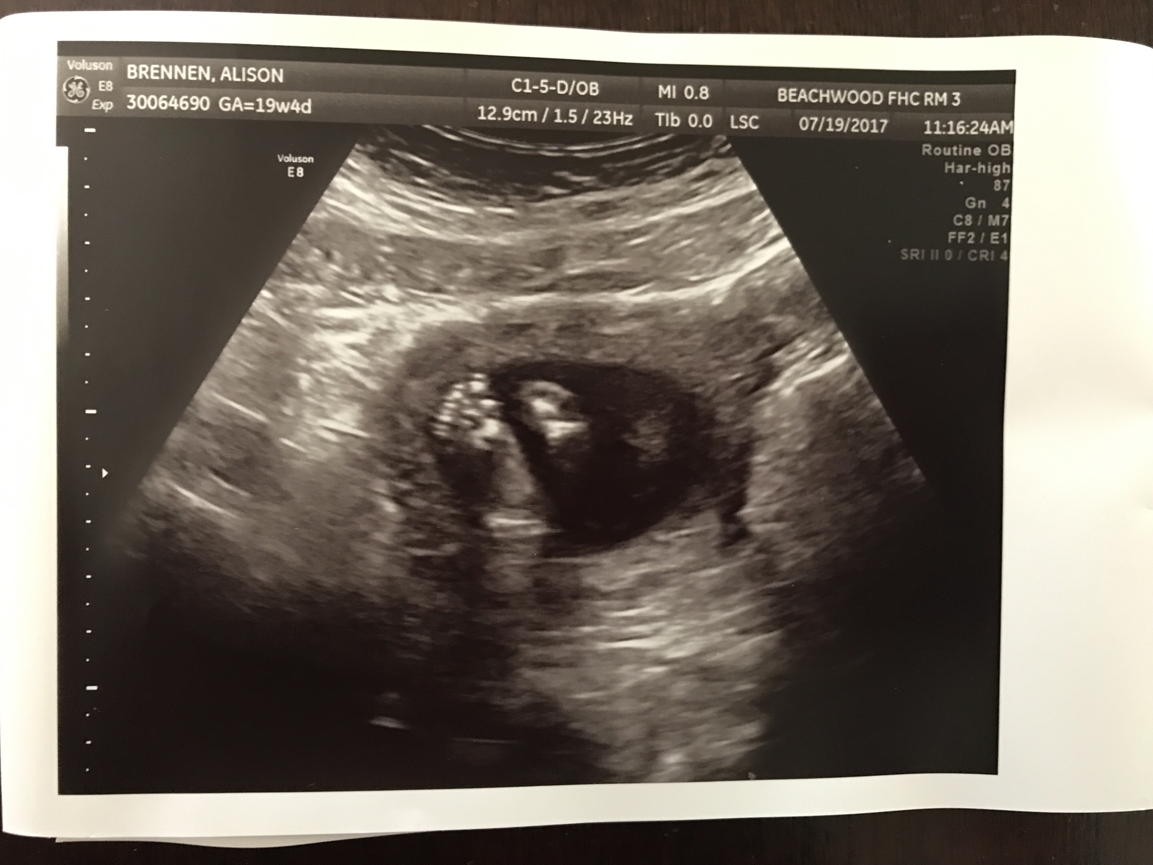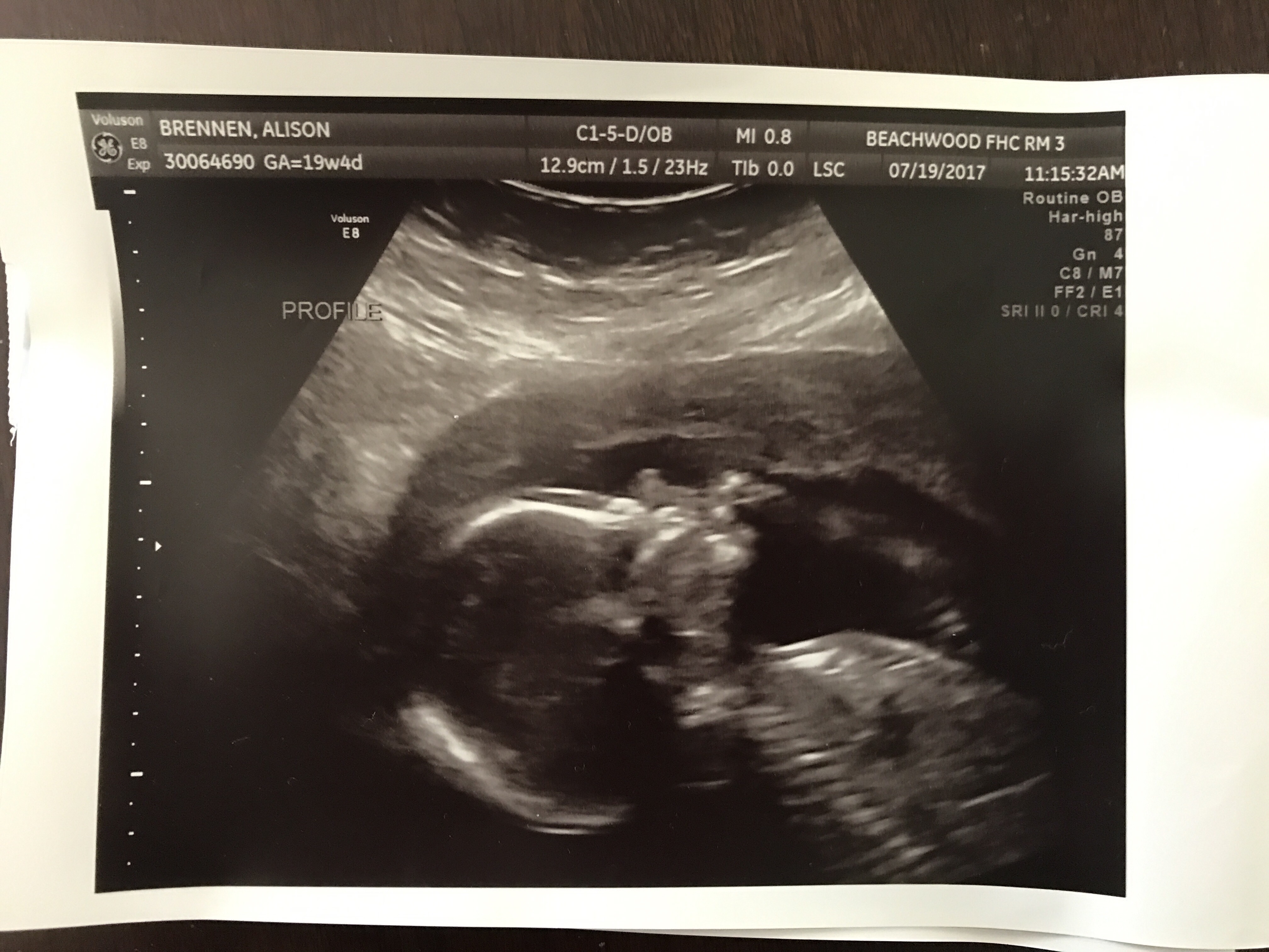 On Tuesday, we had our anatomy ultrasound and took Auntie Emmy and Grammy Ronda with us. The tech was not as intrigued as we were but we eventually wore her down and she started narrating what she was seeing. We were there for about twenty minutes so we got to see a lot – including our son’s beautiful face! (We also confirmed his gender, but I’ll save you – and him! – the pornography!) The tech and the doctor thought everything looked great – more wonderful news for us!